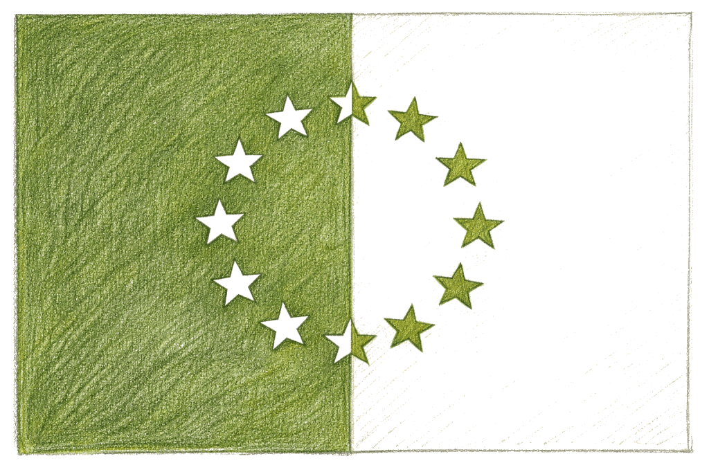 Laten we beginnen met de betekenis van de nieuwe vlag van de Confederatie: de kleuren zijn groen (#668738) en wit (#FFFFFF). Groen symboliseert de natuur en in het bijzonder de vele bossen in deze provincie, die de laagste bevolkingsdichtheid van het koninkrijk heeft. Wit is als de lege pagina van een schrift die ons uitnodigt ons eigen toekomst te schrijven. De vlag is versierd met twaalf sterren, die overeenkomen met het aantal gemeenten in de provincie Drenthe. De plaatsing van de sterren verwijst bovendien naar de Europese vlag.
