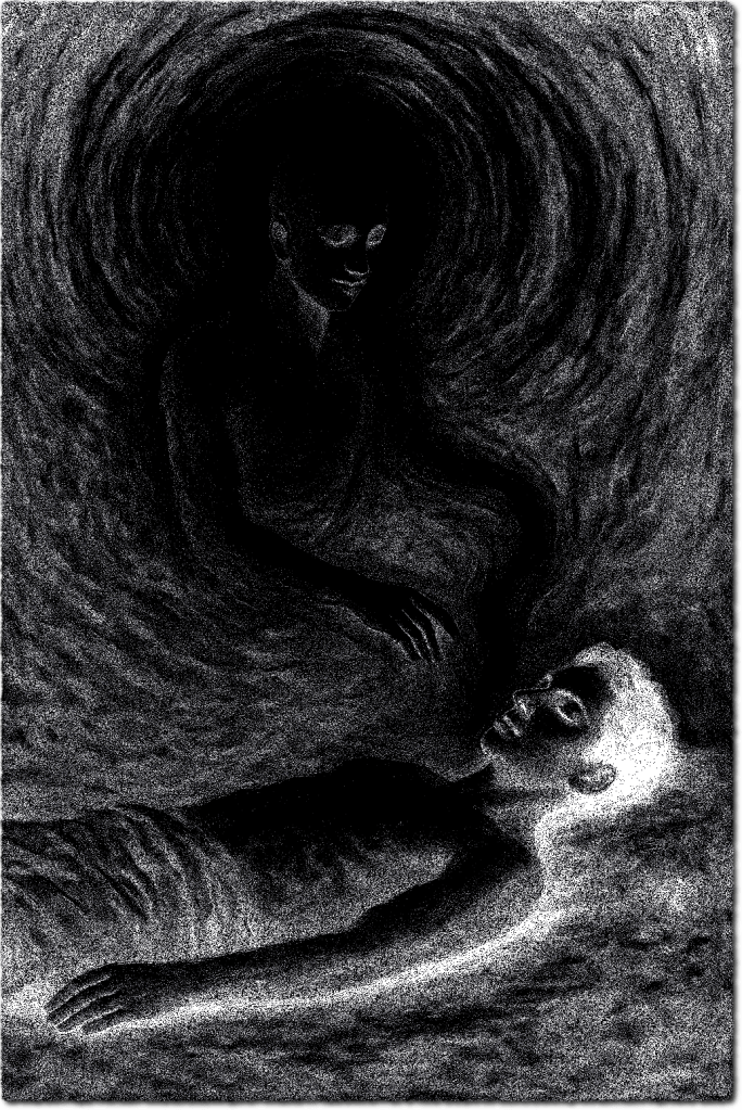 Un matin, alors qu’Ewa et Adem goûtaient au plaisir d’une marche sur la plage, un démon émergea lentement des eaux et se présenta à eux sous les traits d’une créature séductrice. Il leur demanda :